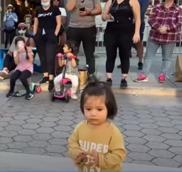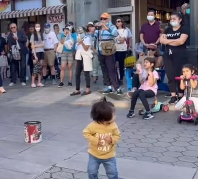 This is what happened a few months ago in Los Angeles, California, when a little girl found herself among two street musicians who played a cover of the popular song “Dance Monkey”, by Tones and I.